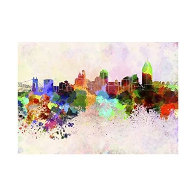 Wee Blue Coo Painting Cityscape Paint Splash Skyline Cincinnati Wall Art Print