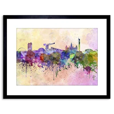 Wee Blue Coo Painting Cityscape Paint Splash Skyline Glasgow Framed Wall Art Print