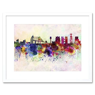 Wee Blue Coo Painting Cityscape Paint Splash Skyline Lisbon Framed Wall Art Print
