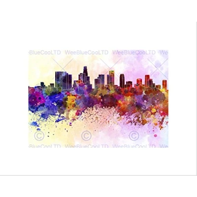 Wee Blue Coo Painting Cityscape Paint Splash Skyline Los Angeles Wall Art Print