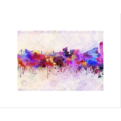 Wee Blue Coo PAINTING CITYSCAPE PAINT SPLASH SKYLINE MANCHESTER FRAMED ART PRINT B12X13542
