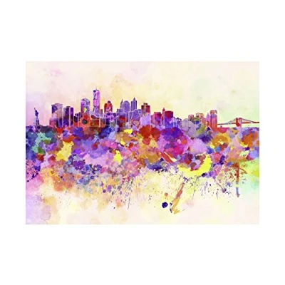 Wee Blue Coo Painting Cityscape Paint Splash Skyline New York Wall Art Print