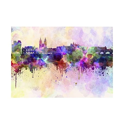 Wee Blue Coo Painting Cityscape Paint Splash Skyline Prague Wall Art Print