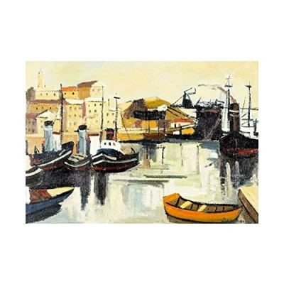 Wee Blue Coo Painting Cityscape Port Harbour Dock Savona Italy Boat Wall Art Print