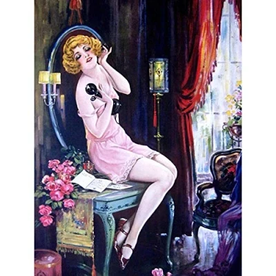 Wee Blue Coo Painting Deco Flapper Woman Candlestick Telephone Art Print Poster Wall Decor 12X16 Inch