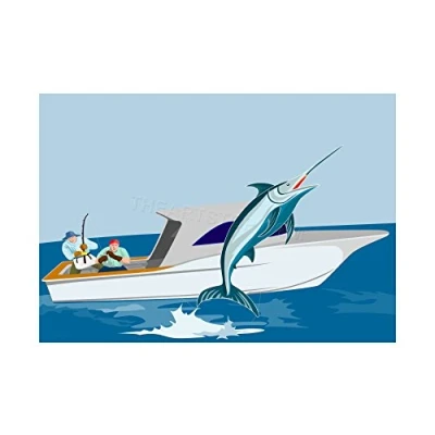 Wee Blue Coo Painting Deep Sea Fishing Marlin Boat Jump Wall Art Print
