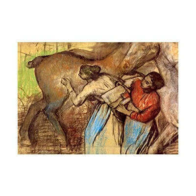 Wee Blue Coo Painting Degas Two Women Washing Horses Old Master Wall Art Print