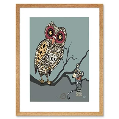 Wee Blue Coo Painting Digital Birds Owl Mouse Mosaic Design Branch Framed Wall Art Print