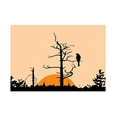 Wee Blue Coo Painting Digital Graphic Sunset Silhouette Tree Bird Wall Art Print