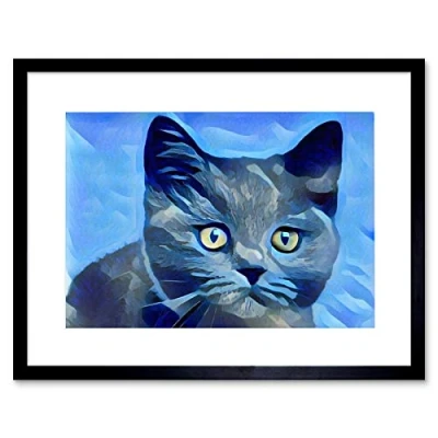 Wee Blue Coo Painting Digital Kitty Cat Framed Wall Art Print