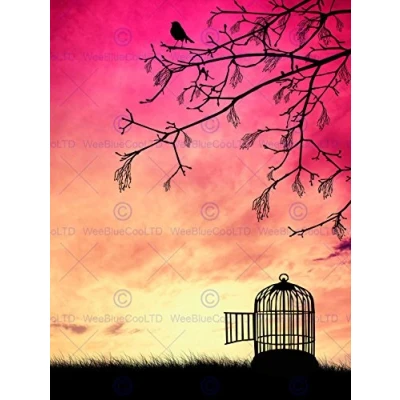 Wee Blue Coo PAINTING DRAWING BIRD CAGE FREE TREE BRANCH SUNSET ART PRINT POSTER MP3701B