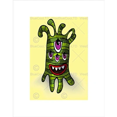 Wee Blue Coo PAINTING DRAWING BIZARRE GREEN MONSTER CARTOON FRAMED ART PRINT MOUNT B12X13194