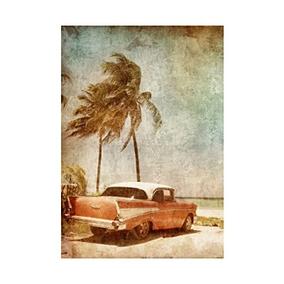 Wee Blue Coo Painting Drawing Car Tropical Palm Beach Picture Wall Art Print