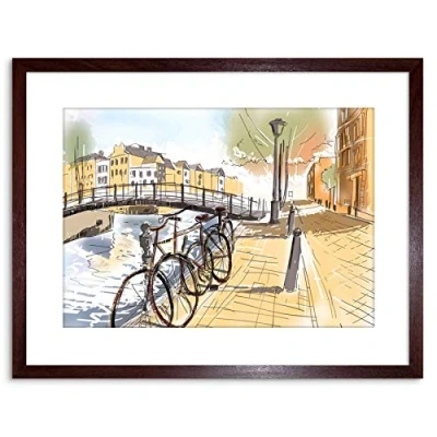 Wee Blue Coo PAINTING DRAWING CITYSCAPE STREET AMSTERDAM CANAL BRIDGE FRAMED PRINT F97X4544