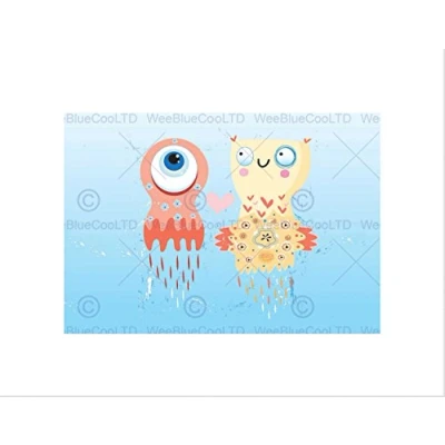 Wee Blue Coo PAINTING DRAWING COOL CARTOON MONSTER KIDS CHILDREN FRAMED ART PRINT B12X13207