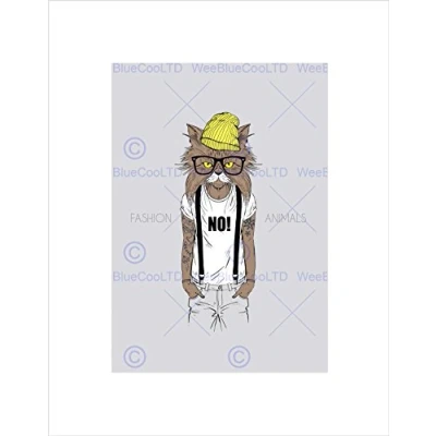 Wee Blue Coo PAINTING DRAWING FASHION ANIMALS PROTESTER CAT COOL FRAMED ART PRINT B12X13223