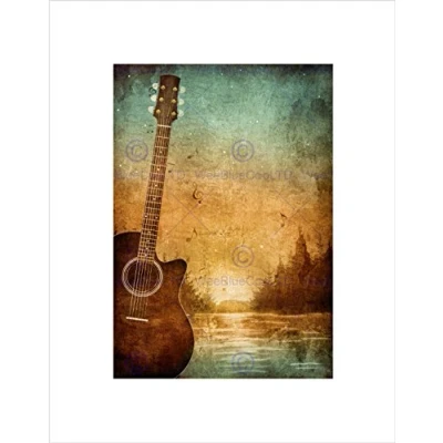 Wee Blue Coo Painting Drawing Guitar Landscape Forest Grunge Wall Art Print