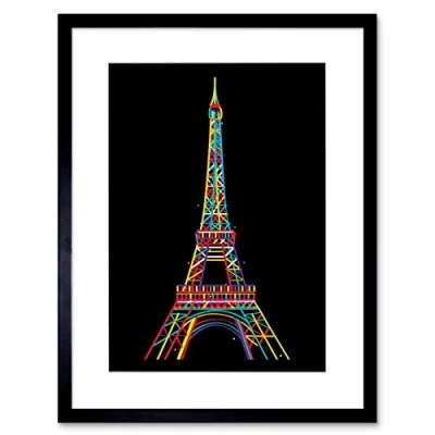 Wee Blue Coo Painting Drawing Landmark Eiffel Tower Paris Colour Framed Wall Art Print