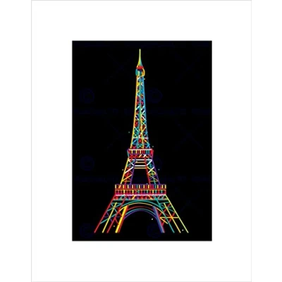 Wee Blue Coo Painting Drawing Landmark Eiffel Tower Paris Colour Wall Art Print