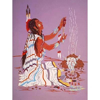 Wee Blue Coo Painting Drawing Native American Dian Fire Shaman Dress Art Print Poster Wall Decor 12X16 Inch