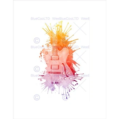 Wee Blue Coo Painting Drawing Paint Splash Electric Guitar Wall Art Print