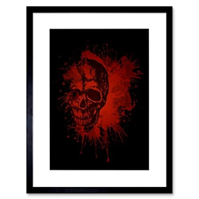 Wee Blue Coo Painting Drawing Paint Splash Red Creepy Skull Framed Wall Art Print