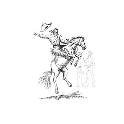 Wee Blue Coo Painting Drawing Sketch Rodeo Cowboy Horse Hat Bronco Buck Wall Art Print