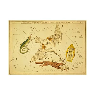 Wee Blue Coo Painting Drawing Star Map Swan Fox Lyre Constellation Wall Art Print