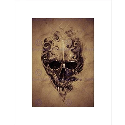 Wee Blue Coo PAINTING DRAWING TATTOO CREEPY SKULL GOTHIC GRUNGE FRAMED ART PRINT B12X13262