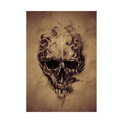 Wee Blue Coo Painting Drawing Tattoo Creepy Skull Gothic Grunge Wall Art Print