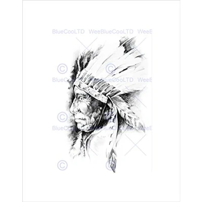 Wee Blue Coo Painting Drawing Tattoo Sketch Native American Chief Wall Art Print