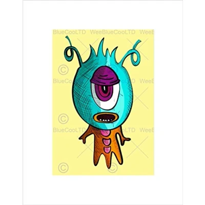 Wee Blue Coo Painting Drawing Weird Cool Cartoon Monster Wall Art Print