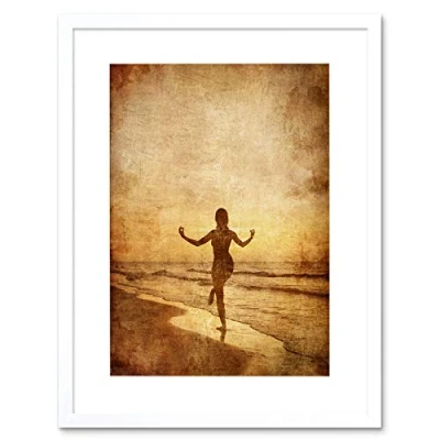 Wee Blue Coo Painting Drawing Yoga Girl Sepia Beach Grunge Framed Wall Art Print