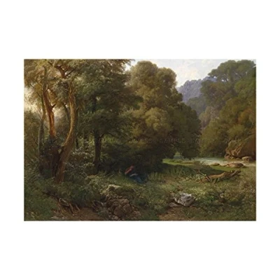 Wee Blue Coo Painting Dreber Woman Reading Mountain Scenery Wall Art Print