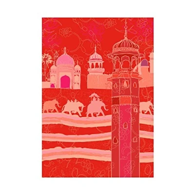 Wee Blue Coo Painting Dt Indian Style Decor Elephants Red Wall Art Print