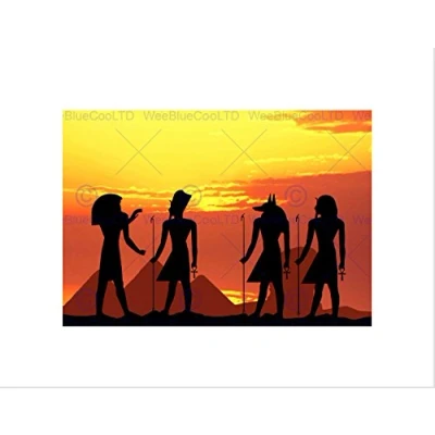 Wee Blue Coo PAINTING EGYPTIAN GODS SILHOUETTE PYRAMID BLACK FRAMED ART PRINT B12X12922