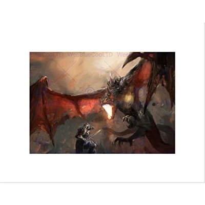 Wee Blue Coo PAINTING FANTASY DRAGON SLAYER BATTLE COOL BLACK FRAMED ART PRINT B12X13587
