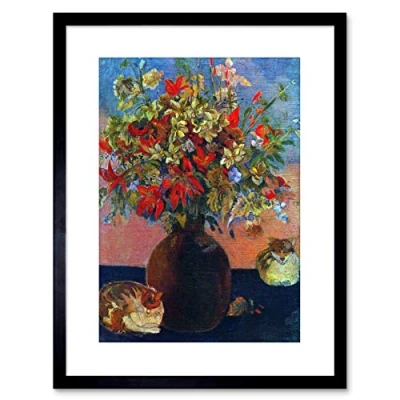 Wee Blue Coo Painting Gauguin Flowers Cats Old Master Framed Wall Art Print