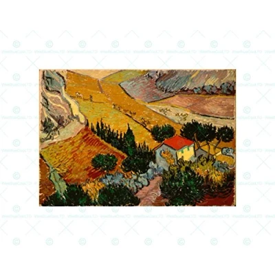 Wee Blue Coo Painting Gogh Vincent Van Landscape With House Ploughman Wall Art Print