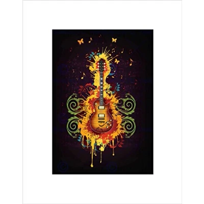 Wee Blue Coo PAINTING GUITAR PAINT SPLASH BUTTERFLY GROOVY COOL RETRO FRAMED PRINT B12X8151