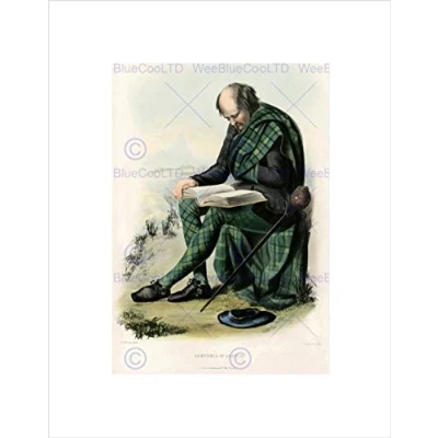 Wee Blue Coo PAINTING HIGHLAND CLAN SCOTLAND TARTAN CAMPBELL ARGYLL FRAMED PRINT B12X12492