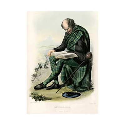 Wee Blue Coo Painting Highland Clan Scotland Tartan Campbell Argyll Wall Art Print