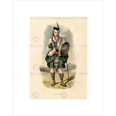 Wee Blue Coo Painting Highland Clan Scotland Tartan Clanranald Wall Art Print