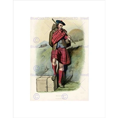 Wee Blue Coo Painting Highland Clan Scotland Tartan Macalister Wall Art Print
