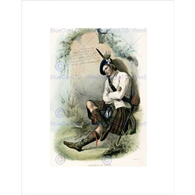 Wee Blue Coo Painting Highland Clan Scotland Tartan Macdonald Glencoe Wall Art Print