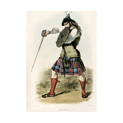 Wee Blue Coo Painting Highland Clan Scotland Tartan Maclachlan Wall Art Print