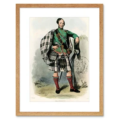 Wee Blue Coo Painting Highland Clan Scotland Tartan Macpherson Framed Wall Art Print
