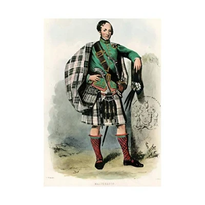 Wee Blue Coo Painting Highland Clan Scotland Tartan Macpherson Wall Art Print