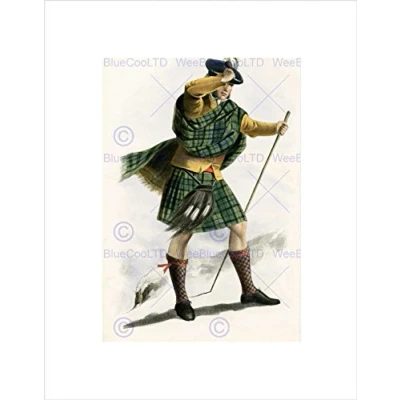 Wee Blue Coo PAINTING HIGHLAND CLAN SCOTLAND TARTAN SUTHERLAND FRAMED ART PRINT B12X12531