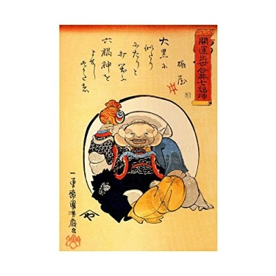 Wee Blue Coo Painting Hotei Buddhism Utagawa Kuniyoshi Japan Wall Art Print